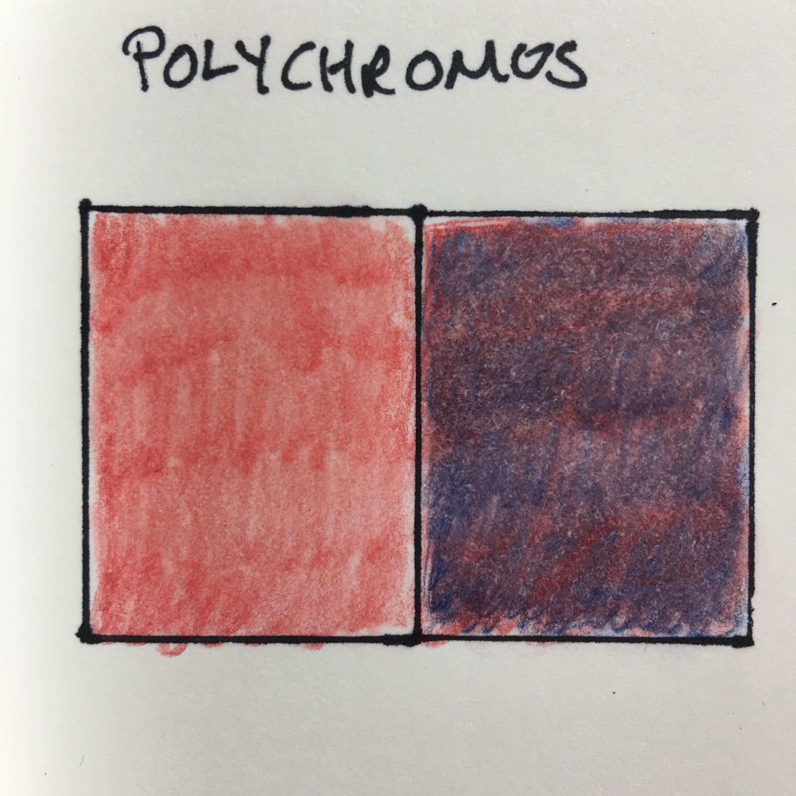 So, I think I would use the blender pens, especially when travelling. I did find it interesting that the Artist's Loft option, which claimed it was specially for wax pencils, actually seemed to work a bit better with the Polychromos. Marginal, though, and the more layers you add, the better these will continue to look. The other thing I really liked with the Artist's Loft was that it was a dual tip pen, giving a larger brush nib and smaller pen nib for detail. Derwent was a two-pack for that, so I would need to carry two pens rather than one to get the same effect.